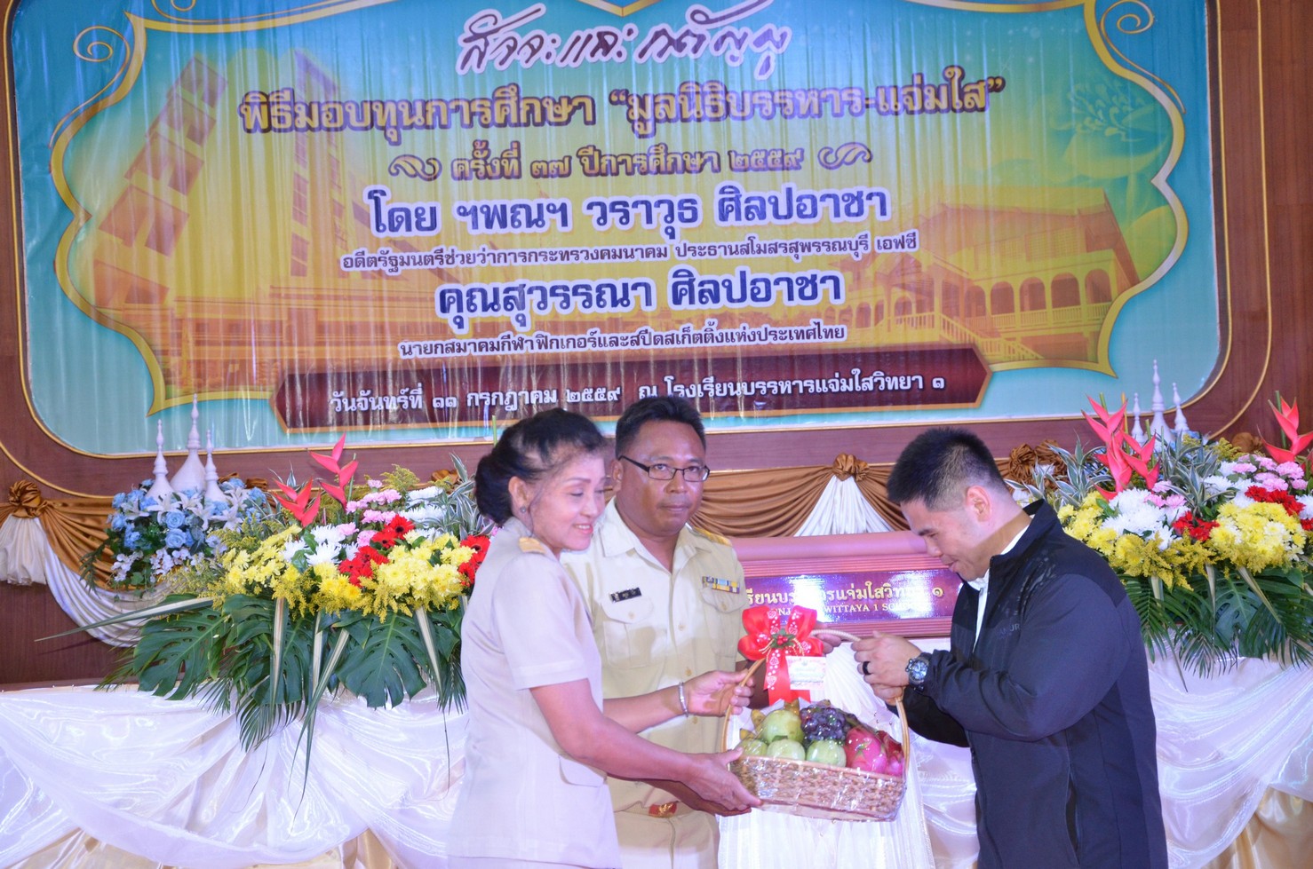 โรงเรียนบรรหารแจ่มใสวิทยา 1 ได้จัดพิธีมอบทุนการศึกษา "มูลนิธิบรรหาร-แจ่มใส " ครั้งที่37 ปีการศึกษา 2559 โดยฯพณฯวราวุธ ศิลปอาชาและคุณสุวรรณา ศิลปอาชา ได้ให้เกียรติเป็นประธานในพิธีในการมอบทุนการศึกษานอกจากนั้นได้ตรวจเยี่ยมศูนย์ฝึกก๊ฬาฟุตบอลโดยมีคณะครูและนักเรียนให้การต้อนรับและมีกิจกรรมฉลองวันคล้ายวันเกิดของฯพณฯวราวุธ ศิลปอาชา โดยมีนายบุญชู จันทร์สุวรรณ นายกอบจ.สุพรรณบุรี เป็นตัวแทนในการกล่าวอวยพร บรรยากาศเต็มไปด้วยความประทับใจเป็นอย่างยิ่ง |