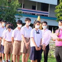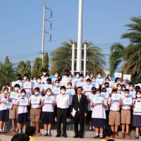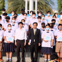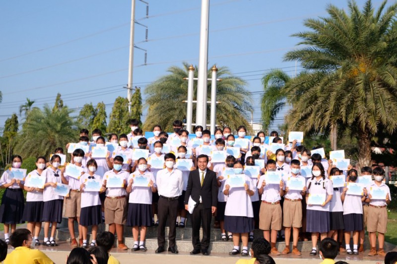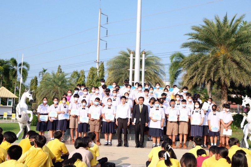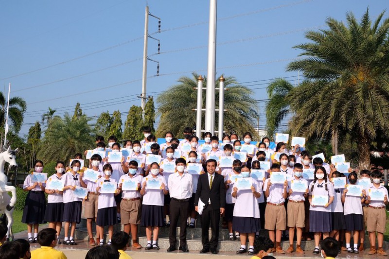 ดร.เชี่ยวชาญ ดวงใจดี ผู้อำนวยการโรงเรียน มอบเกียรติบัตรและแสดงความยินดีกับนักเรียนที่ได้รับรางวัล " ครอบครัวคุณธรรม"